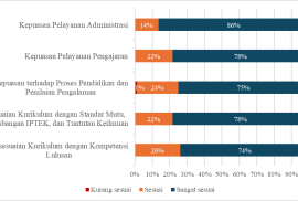Penilaian terhadap kurikulum dilakukan melalui tracer study pada tahun 2024–2025 dengan melibatkan 88 alumni sebagai responden. Berdasarkan hasil analisis, mayoritas alumni menyatakan kepuasan terhadap proses pelayanan pembelajaran dan administrasi di Program Studi Profesi Insinyur Kehutanan (PSPIK), serta merasakan dampak positif setelah menyelesaikan studi insinyur di program tersebut (Gambar 1). Kurikulum dinilai telah sesuai dengan standar mutu, perkembangan IPTEK, dan tuntutan keilmuan yang ada.